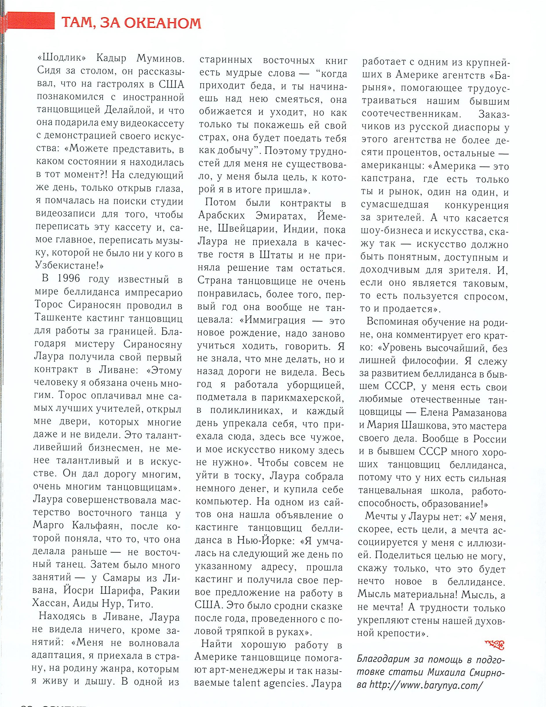 Article about LaUra in Oriental, Russian Magazine about oriental dance www.orientalmagazine.ru